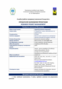 На цій сторінці зібрано силабуси всіх навчальних дисциплінспеціальності Е3 Хімія. Кожен силабус містить опис курсу, навчальні цілі, програму, методи оцінювання та рекомендовану літературу. Документи доступні для перегляду та завантаження у форматі PDF.