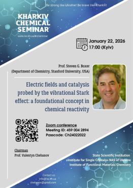 22 січня 2026 року о 17:00 відбулася лекція Харківського хімічного семінару (Kharkiv Chemical Seminar). Стівена Боксера професора хімії (Prof. Steven G. Boxer). Каміля Дрейфуса хімічного факультету Стенфордського університету (США).