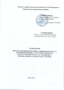 Положення про внутрішній моніторинг і оцінювання якості освітнього процесу в ІПМ НАНУ